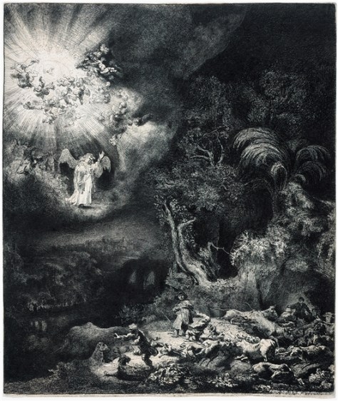 One of the epic scenes from the Christmas story, from the imagination of Rembrandt van Rijn, centuries ago, the ‘Angel Appearing to the Shepherds’: